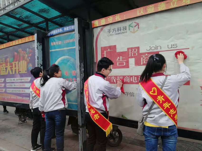 公司青年員工積極響應,對豐華大廈附近的公交站點、公共自行車停放點等進行義務清掃。活動中大家充分發揚不怕臟、不怕累的精神,清洗過的站點煥然一新,受到路過市民的贊許和表揚。